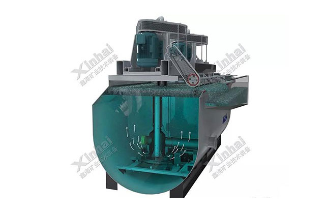 浮选机是选矿厂用于选别作业的主要设备,它通过搅拌充气对加药处理过的矿浆进行作业,使其中某些矿粒选择性地附着在气泡上,上浮至矿浆表面后被浮选机刮板挂出,形成泡沫产品,其余矿粒则留在矿浆中,以实现分离目的。