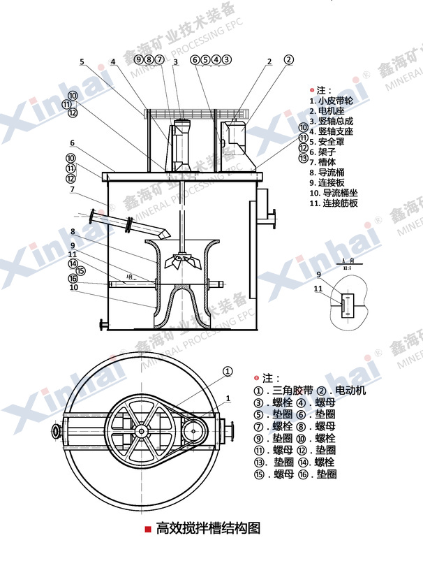 大象彩票 高效搅拌槽在传统搅拌槽的基础上进行了改进。它是一款强制矿浆在搅拌槽内进行上下循环的搅拌装置。与普通搅拌槽不同,高效搅拌槽的叶轮直径更大,而且呈现伞形结构。通过叶轮对槽体内的矿浆加压,压力使矿浆进行上下循环,从而使浮选药剂与矿浆能够混合得更加充分。